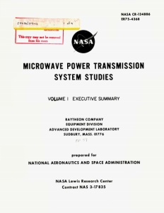 NASA CR-134886 ER75-4368 MICROWAVE POWER TRANSMISSION SYSTEM STUDIES VOLUME I EXECUTIVE SUMMARY RAYTHEON COMPANY EQUIPMENT DIVISION ADVANCED DEVELOPMENT LABORATORY SUDBURY, MASS. 01776 prepared for NATIONAL AERONAUTICS AND SPACE ADMINISTRATION NASA Lewis Research Center Contract NAS 3-17835 This copy may not be removed from file room